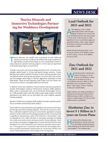 nologies, global leader in mining training-technology solutions, Tharisa orld demand for refined Zinc