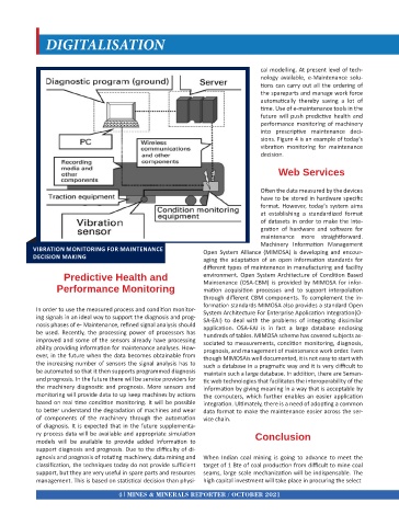 VIBRATION MONITORING FOR MAINTENANCE Open System Alliance (MIMOSA) is developing and encour-